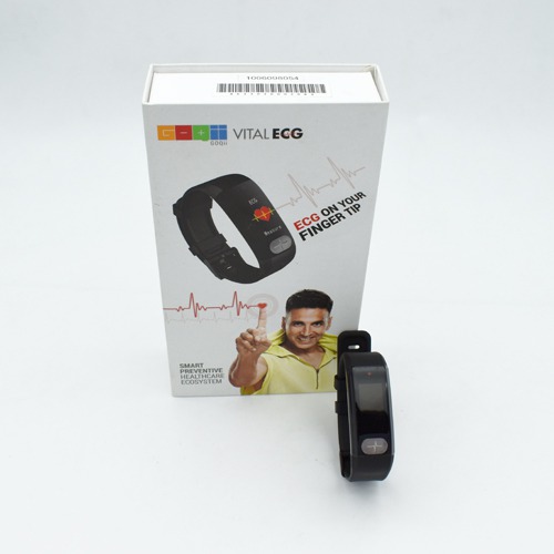 • GOQii VITAL ECG provides ECG screening (Single lead resting ECG) via tracker which you can sync with the GOQii app where you can check the descriptive ECG reports powered by Tricog. You can share these reports with your physician via a share button on the app itself or save them as a PDF on your phone for further evaluation.