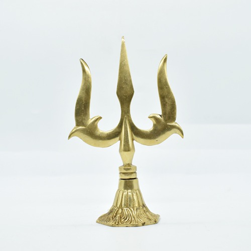 Shiva Brass Trishul with Round Base Shiv Trishul Brass trishul, Yellow Colour