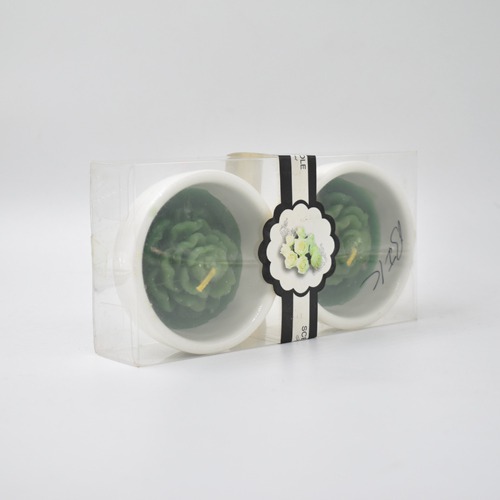 Green Colour Flower Design Scented Candle With Candle Bowl