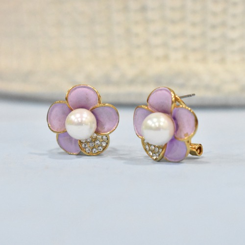 Purple Flower With Pearl Design Earrings | Earrings | Women's Earrings