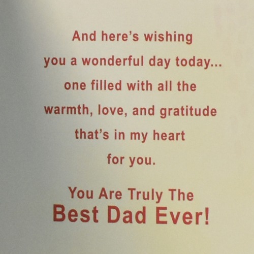 • Inside Card: And here`s wishing you a wonderful day today... One filled with all the warmth, love, and gratitude that`s in my heart for you! You Are Truly The Best Dad Ever