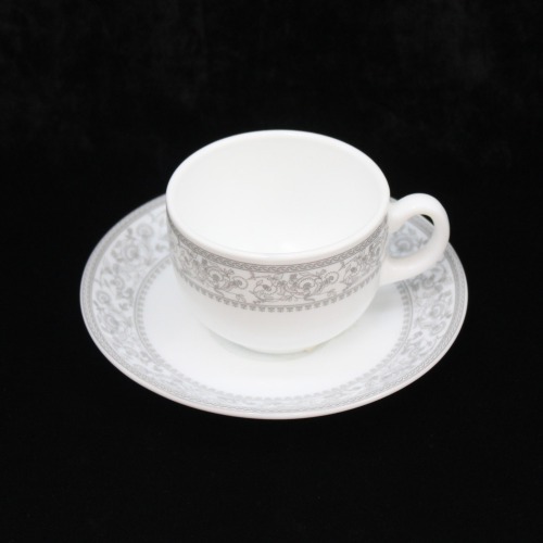 • Cup and Saucer set containing 6 piece cup and saucer set made up of opal ware which is a 100% bone-ash free material that is microwave and dishwasher safe.