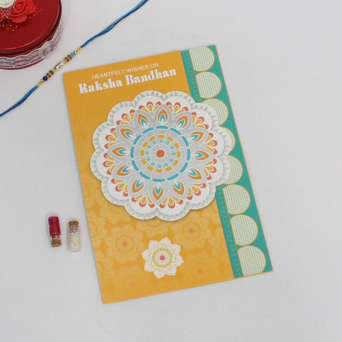• This Raksha Bandhan surprises your brother or sister by giving them this beautifully designed greeting card and one wonderfully crafted Rakhi and conveying your heartily wishes to them.