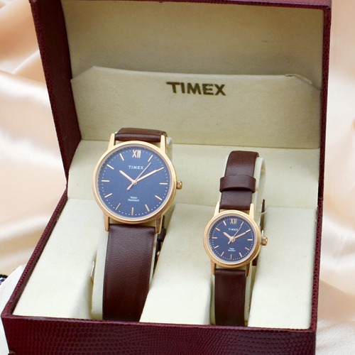 Timex Couple Black Dial Brown Leather Strap | TW00PR243